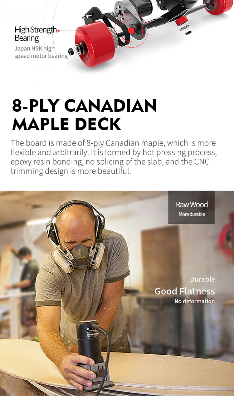 Hub Motor 7ply Canadian maple, Green PU Wheel Remote Control + Samsung battery