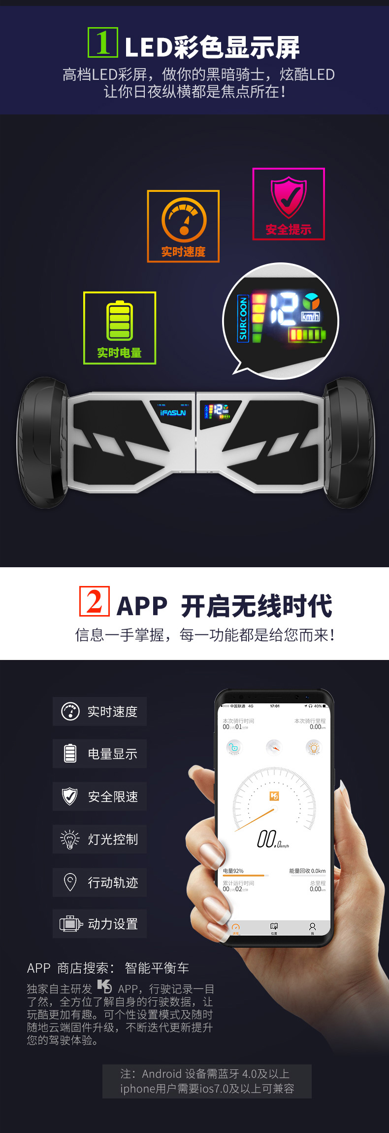 黑科技智能体感代步车 金刚双驱滑板 长续航+无线遥控APP+滑板背包